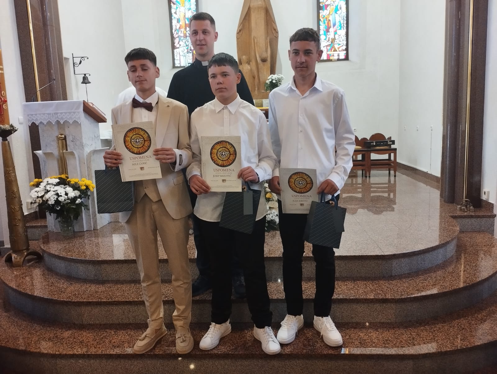 Iskreno čestitamo našim dragim krizmanicima, njihovim obiteljima i kumovima i želimo im da radosno i  hrabro koračaju kroz život slijedeći Krista i ostajući vjerni njegovu Evanđelju te, osnaženi darovima Duha Svetoga, budu istinski svjedoci vjere, nade i ljubavi u svijetu u kojem žive.